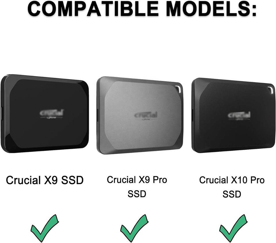 Pour Crucial X9/X9 Pro SSD Case-Sac de rangement de protection rigide en EVA pour SSD portables de 1 To et lecteurs USB 3.2 (organisateur de voyage)