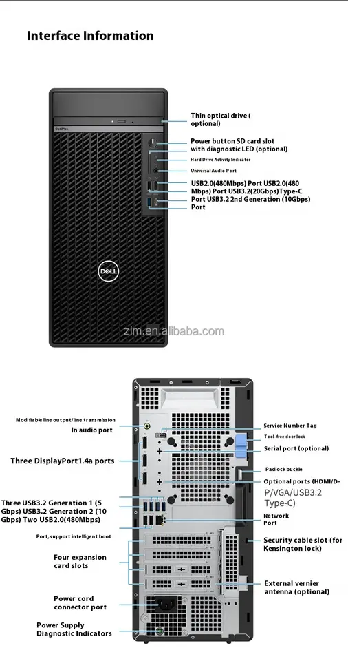 Pour DELL 7020MT Plus 17 \ "ordinateur de bureau 14700/16G/512G SSD 260W noir nouveau pour un usage professionnel
