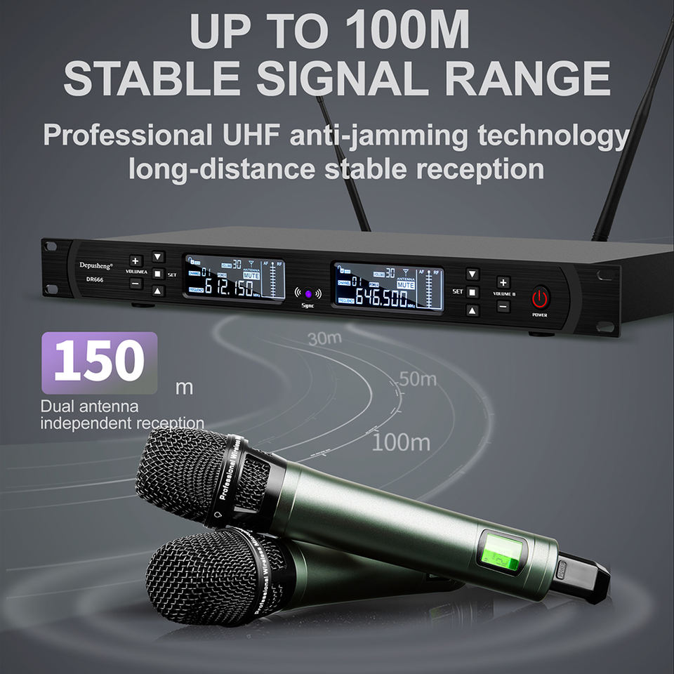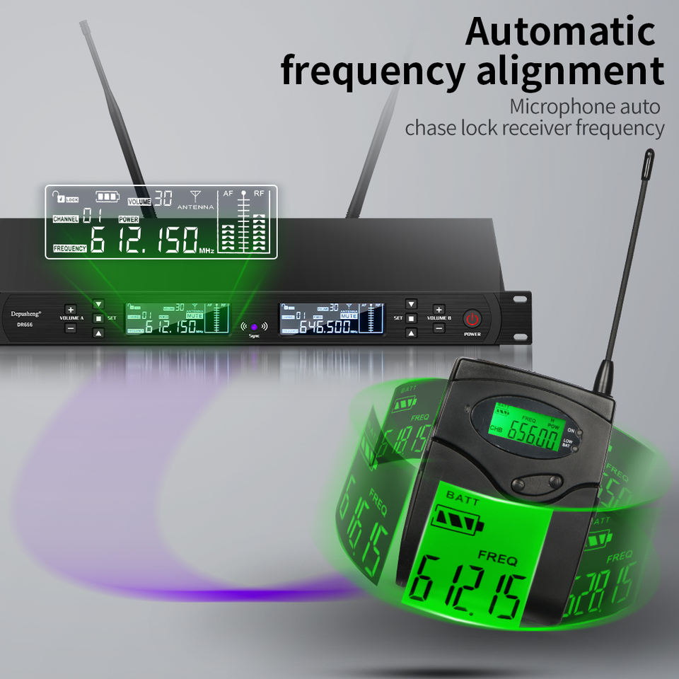 Système de microphone cravate sans fil UHF portable professionnel DR666 avec construction métallique et suppression du bruit