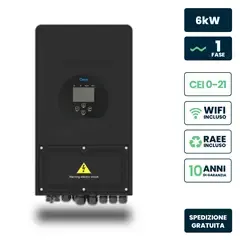 Deye Inverter Hybride Monophasé 6kW Noir 2 MPPT IP65 CEI 0-21 avec WiFi TA Photovoltaïque