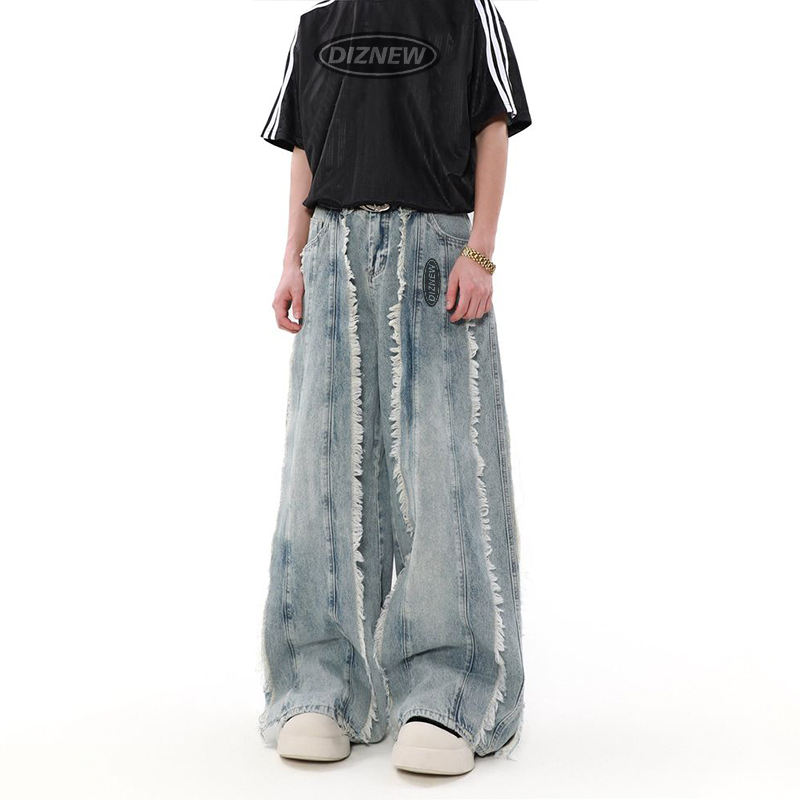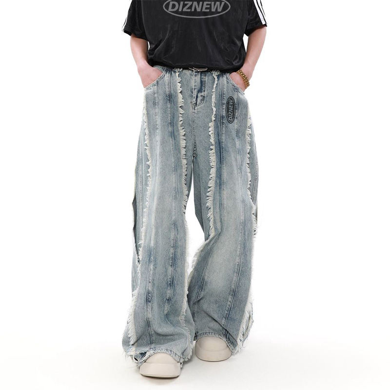 Pour DiZNEW hommes haute qualité Vintage crayon pantalon taille moyenne conception droite adoucissant grande taille blanc foncé lumière en détresse Colo