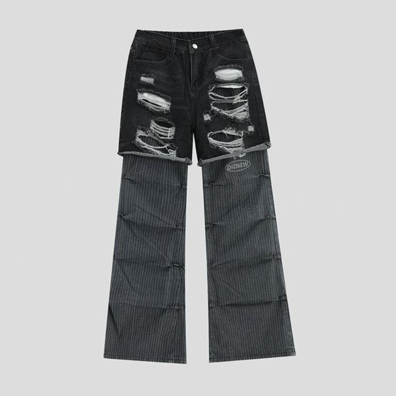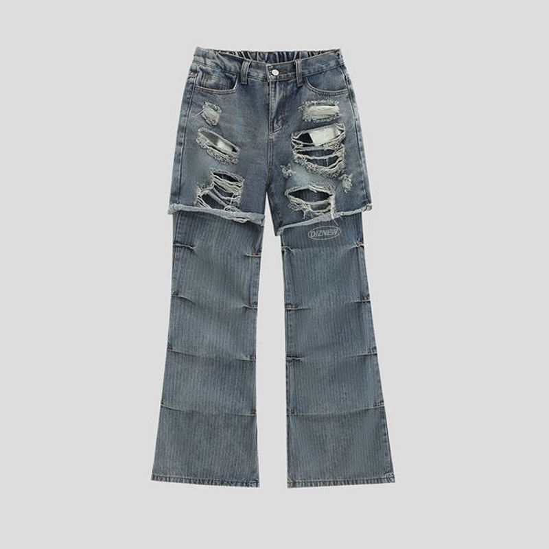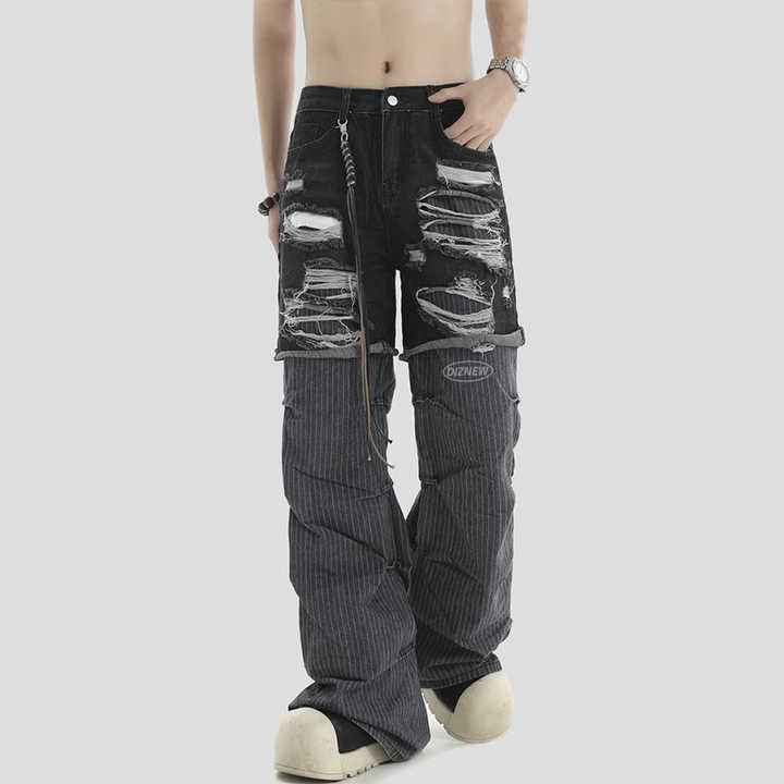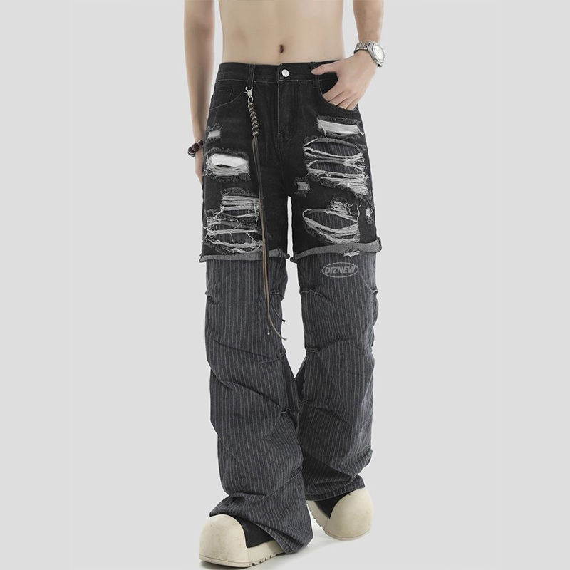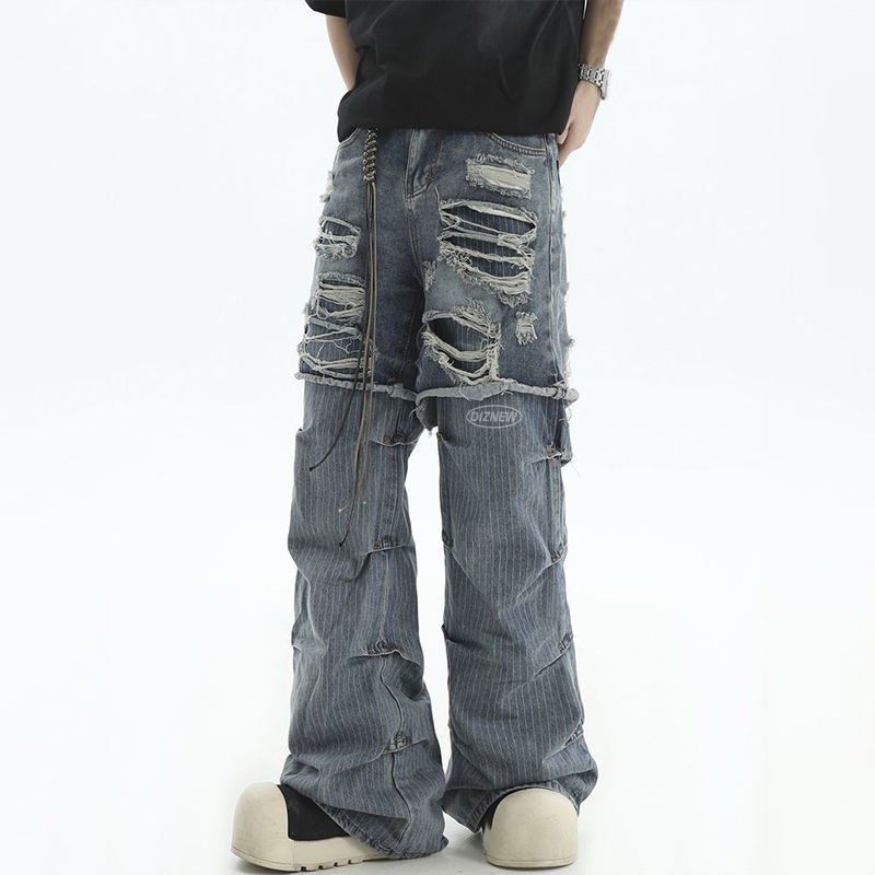 Pour DiZNEW Vintage 2 pièces grande taille hommes imperméable jean mi-taille adoucissant en détresse blanc clair foncé couleur cassé crayon