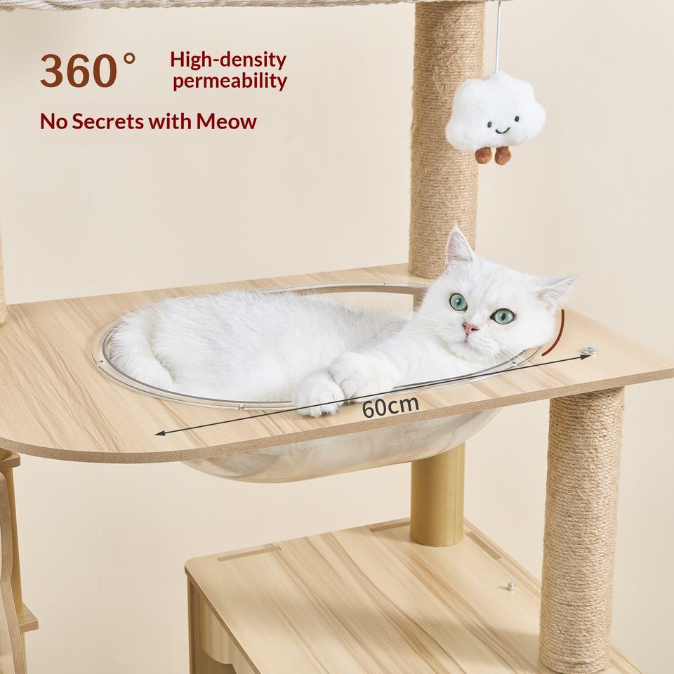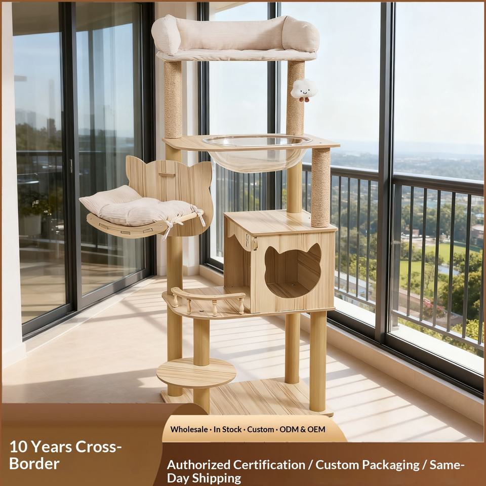 Arbre à chat en panneau de densité pour approvisionnement direct, avec structure d'escalade, nid, design semi-circulaire et grande maison d'arbre - Style simple
