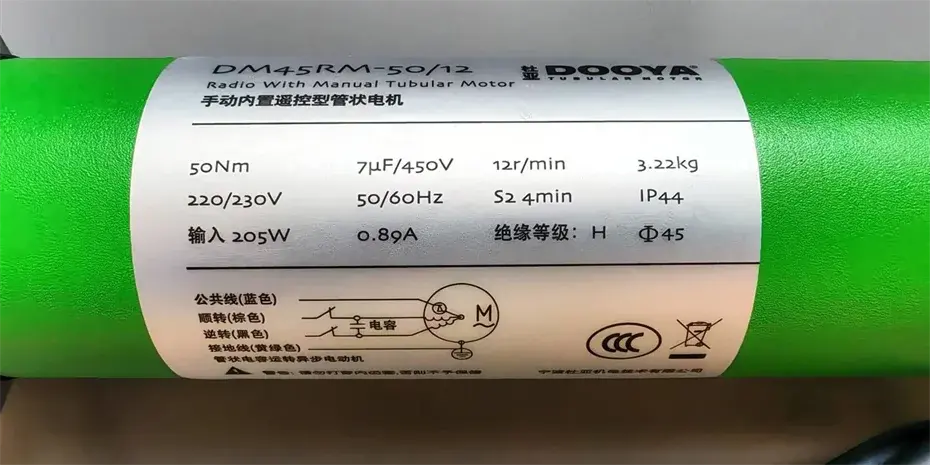 Moteur tubulaire Dooya DM45RM 50/12 pour volet roulant électrique, store banne ou auvent, intégré, horizontal, simple