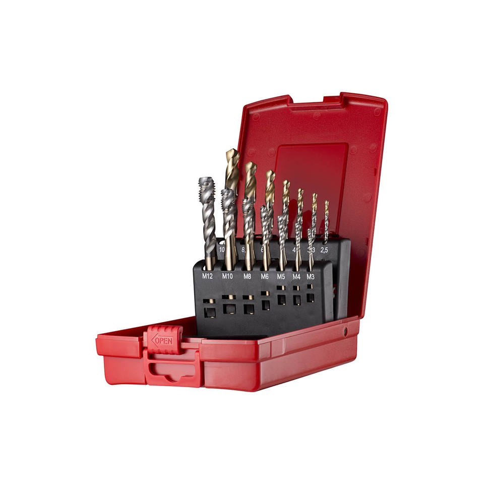Set de tarauds de machine Dormer L114 HSSE-PM M3-M12 + Foret à noyau A002 14 pièces ISO529 EX006H