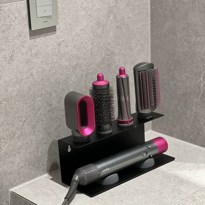 On wall self for Dyson hair dryer