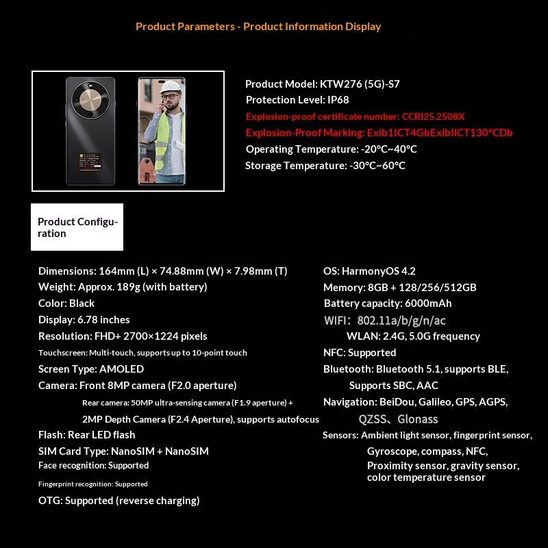 Pour Enjoy 70X, téléphone mobile antidéflagrant certifié Ex, réseau 5G, HarmonyOS, Octa Core, IP68