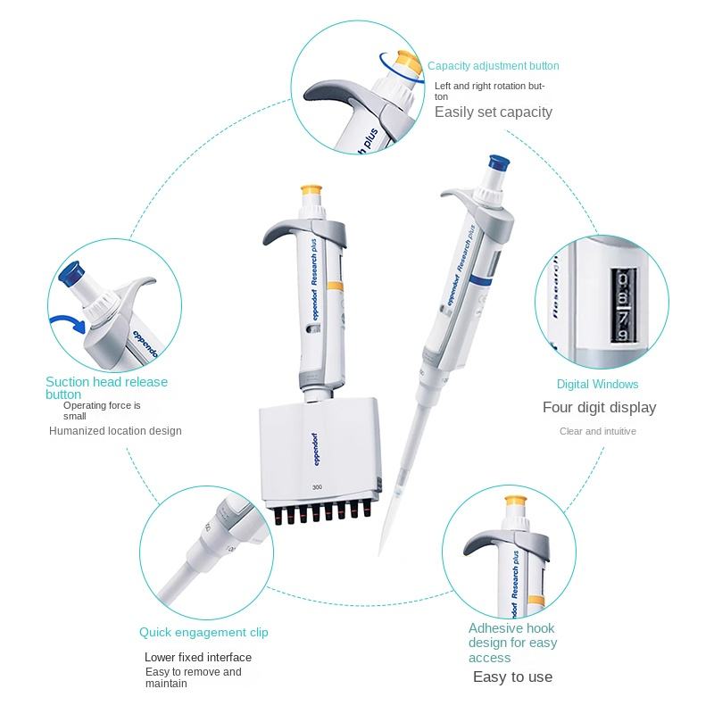 Pour pistolet à micro-pipette à 8 canaux Eppendorf Allemagne Pipette réglable à canal unique en plastique avec plage réglable