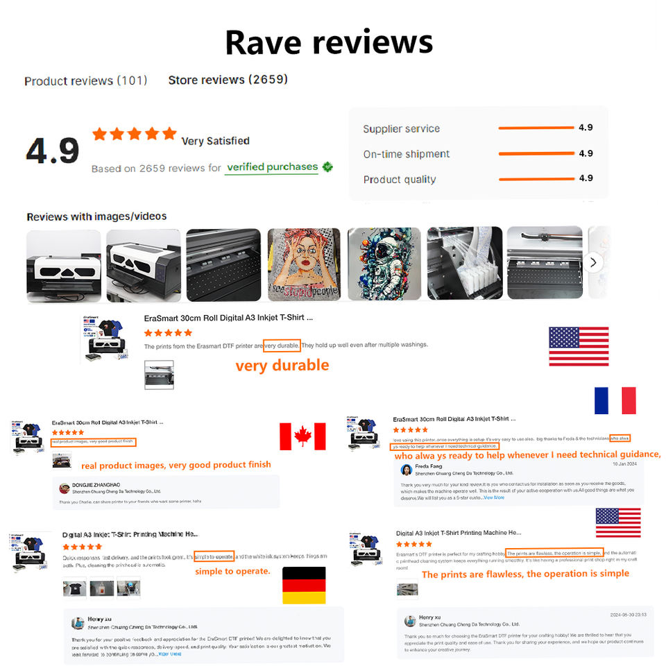 Pour Erasmart A3 DTF imprimante à jet d'encre numérique double tête XP600 L1800 30CM transfert Direct Film T-Shirt vêtement Dtg impression Stock