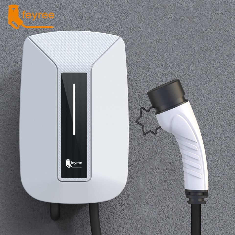 Station de recharge murale pour véhicules électriques Feyree 220V monophasé AC 32A, état neuf, interface standard pour une recharge rapide à domicile.