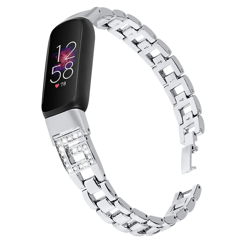 Pour Fitbit Luxe Bracelet de montre de remplacement Bracelet en acier inoxydable réglable Bracelet de luxe en forme de G diamant en métal toiletté Bracelet à boucle
