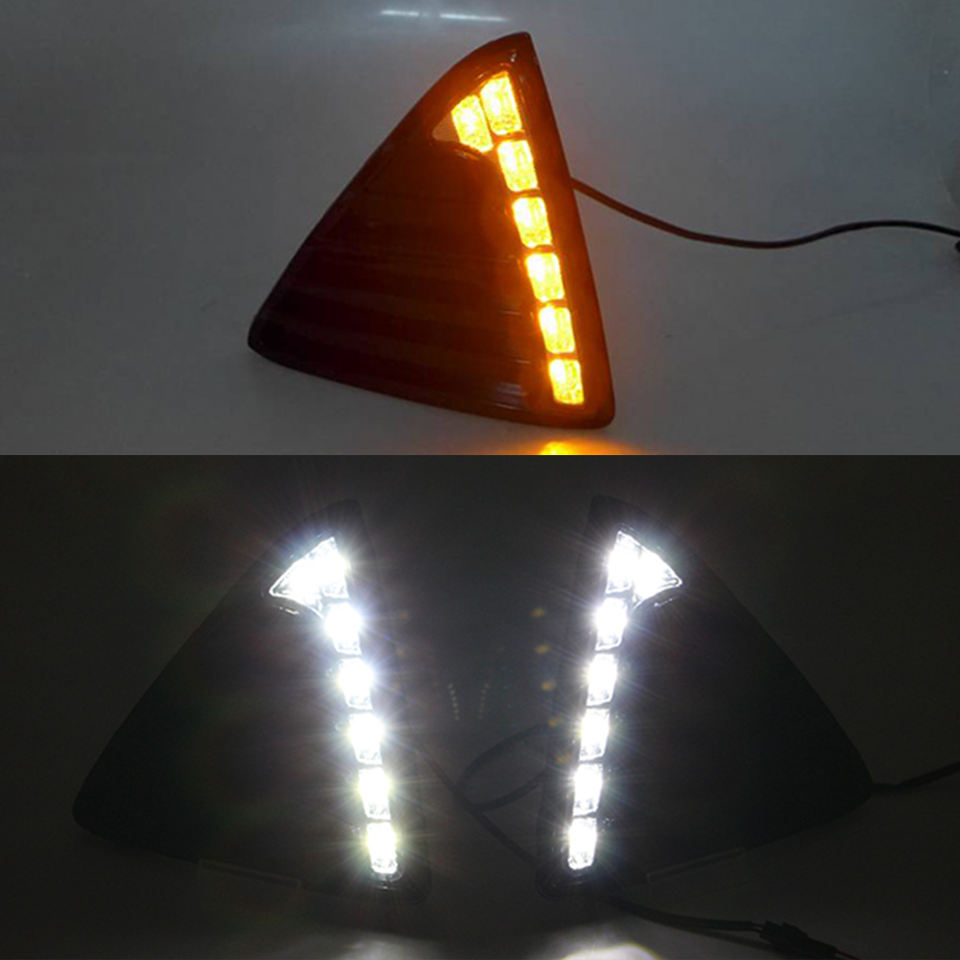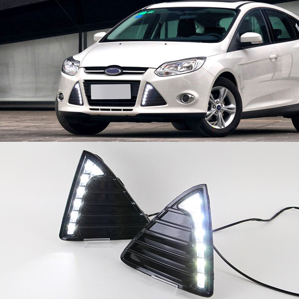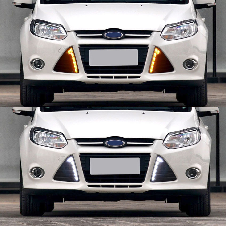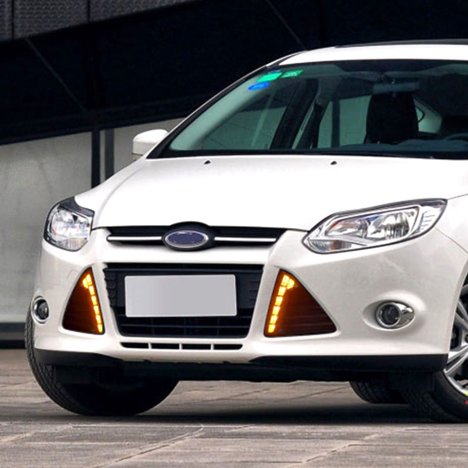 Pour Ford Focus 2012 2013 2014 2015, feux de jour DRL, feux antibrouillard LED avec clignotant jaune