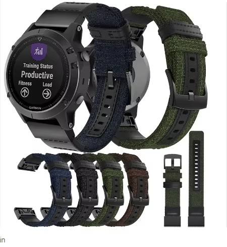 Pour Garmin Fenix 7 6 5 Bracelet de remplacement de bracelet de montre intelligent en cuir véritable + toile 22mm bracelet de montre en Nylon à ajustement rapide