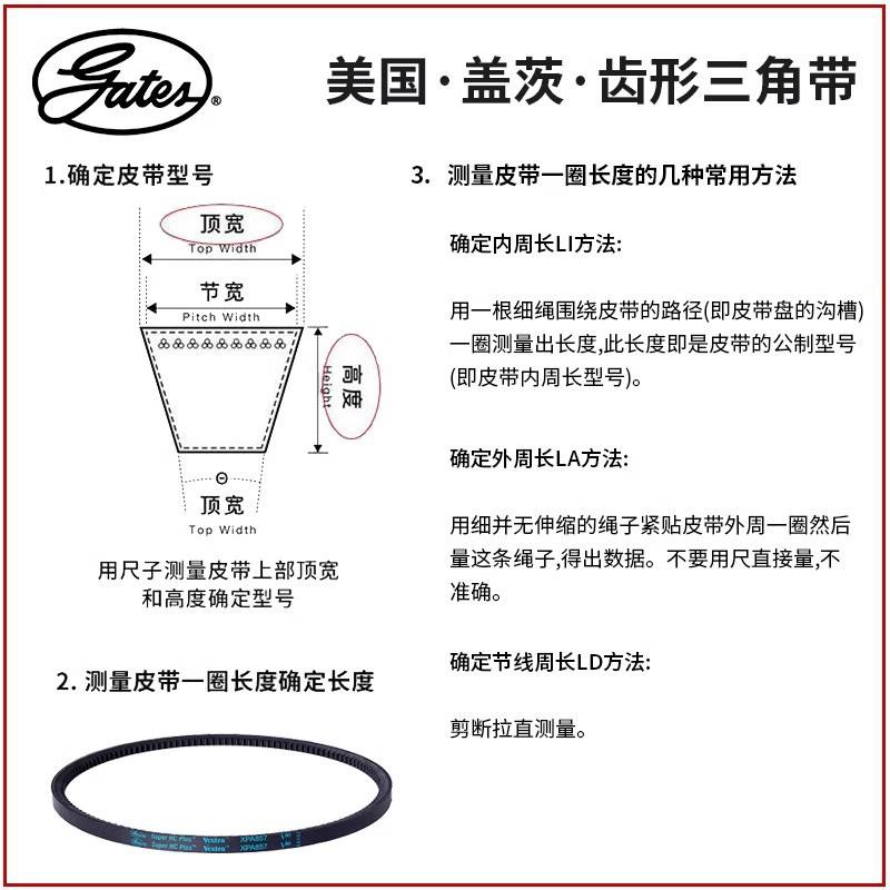 For Gates V-Belts XPZ1000/1010/1012/1024/1025/1030/1037 Imported Genuine Ribbed Timing Belt Steel Rubber Nylon Material OEM