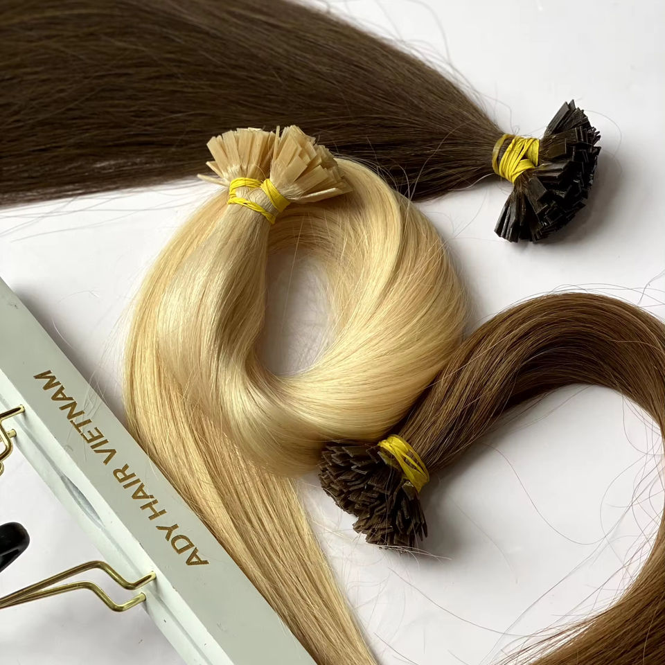For Genius Weft Double Drawn Vietnamese Virgin Human Hair Extensions Raw Keratin Cuticle Aligned Flat Tip Natural Loose Wave