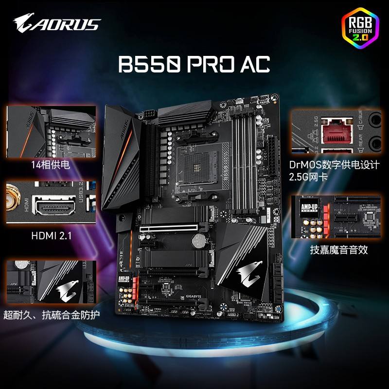 Carte mère pour PC Gamer Gigabyte B550 AORUS PRO AC DDR4 ATX, compatible avec les processeurs B550 AM4, carte mère de jeu Gigabyte pour ordinateur de bureau
