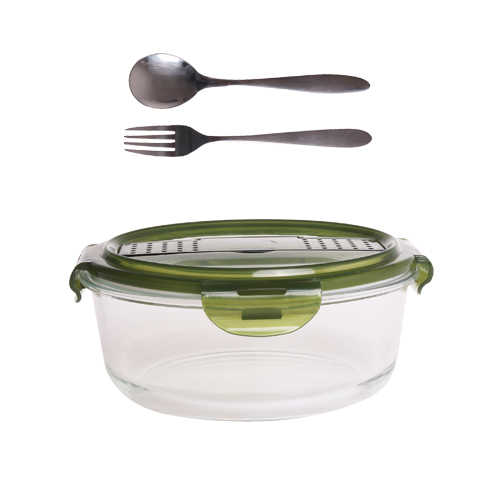 Material:High Borosilicate Glass+PP lid+plastic cutlery