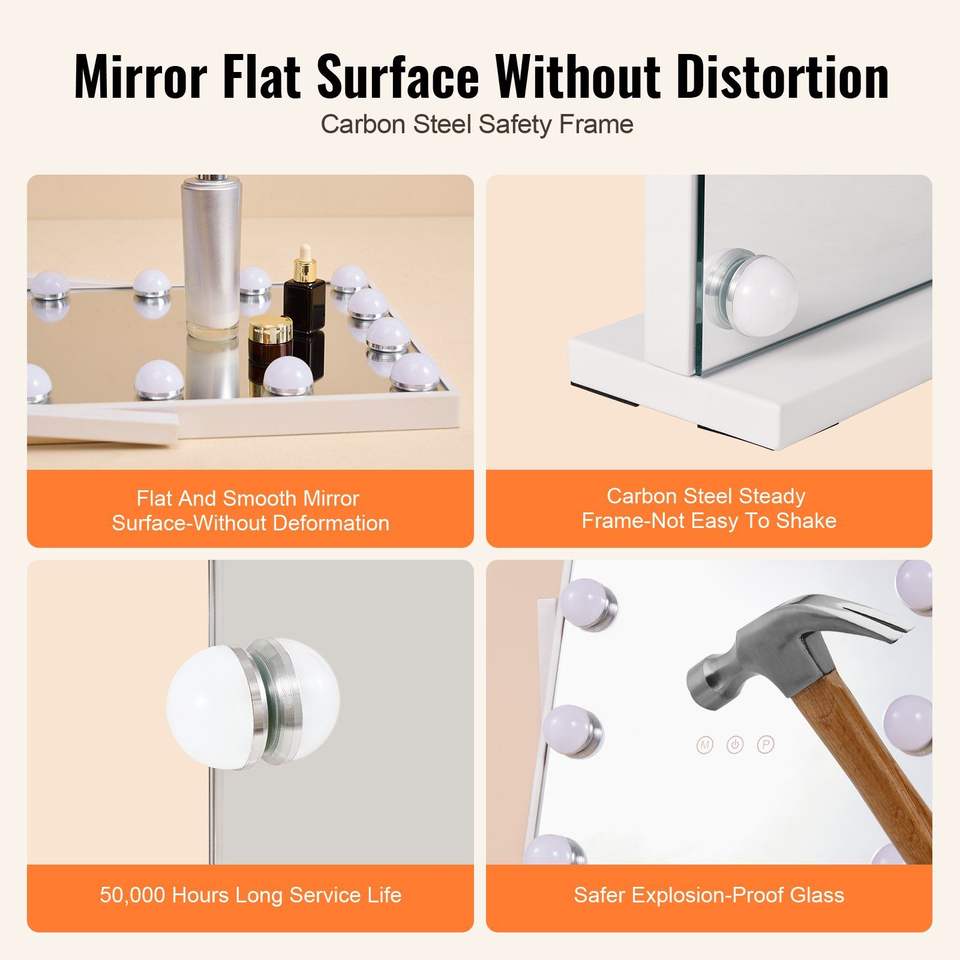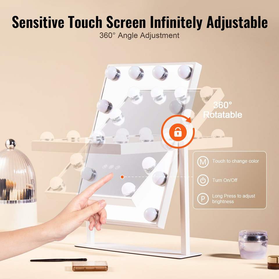 For Hollywood LED Vanity Mirror with 12 Dimmable Bulbs 3 Color Lighting Modes Detachable 5X Magnification Makeup Mirror