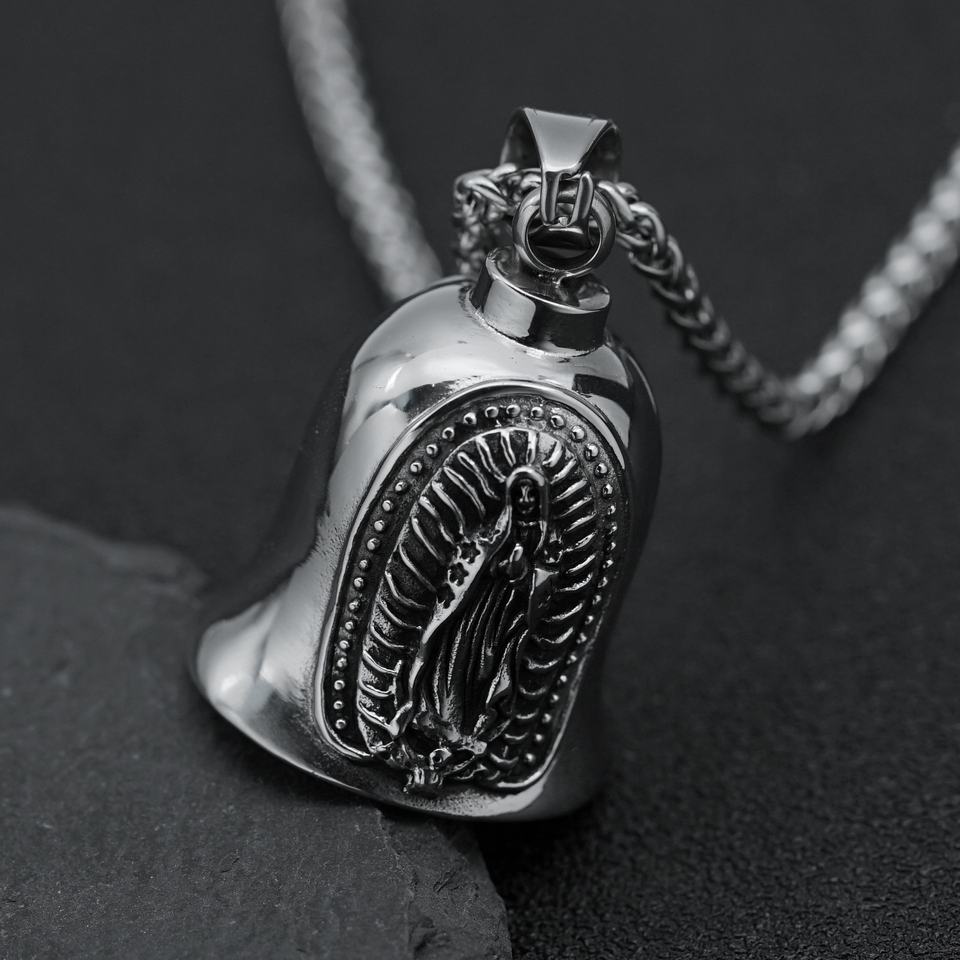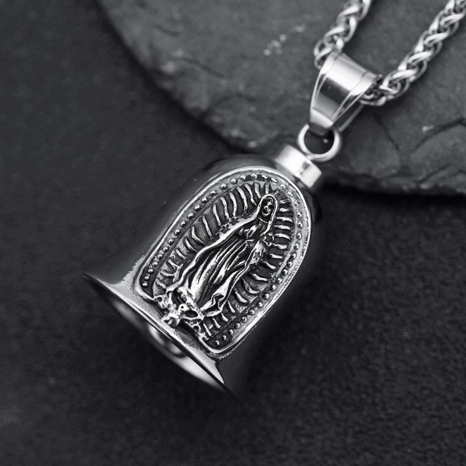 Nouvelle cloche porte-bonheur rétro punk en cuivre avec chaîne en bambou pour motard, Vierge Marie, en promotion