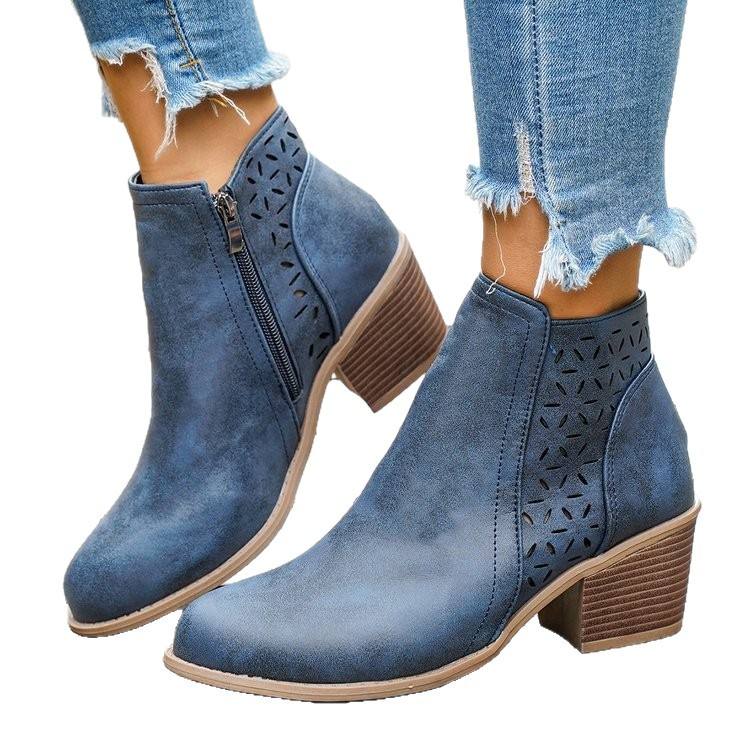 Bottes Chelsea tendance pour femme, collection automne-hiver 2026, à bout pointu ajouré, coupe basse, talon carré, fermeture éclair latérale, doublure en similicuir