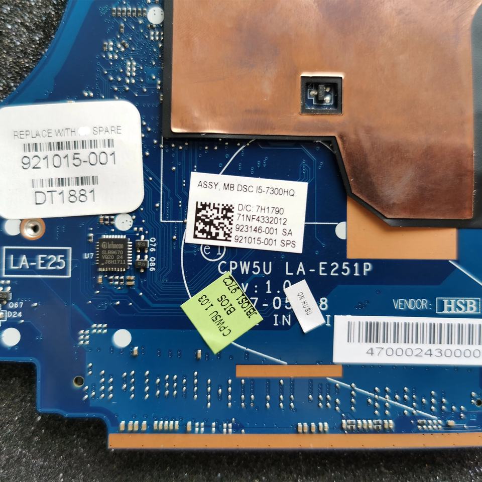 Pour Hp Zbook Studio G4 15 G5 G6 Carte Mère D'ordinateur Portable Avec I5-7300HQ CPU Quadro M1200 LA-E251P 921015-001 100% Testé Expédition Rapide