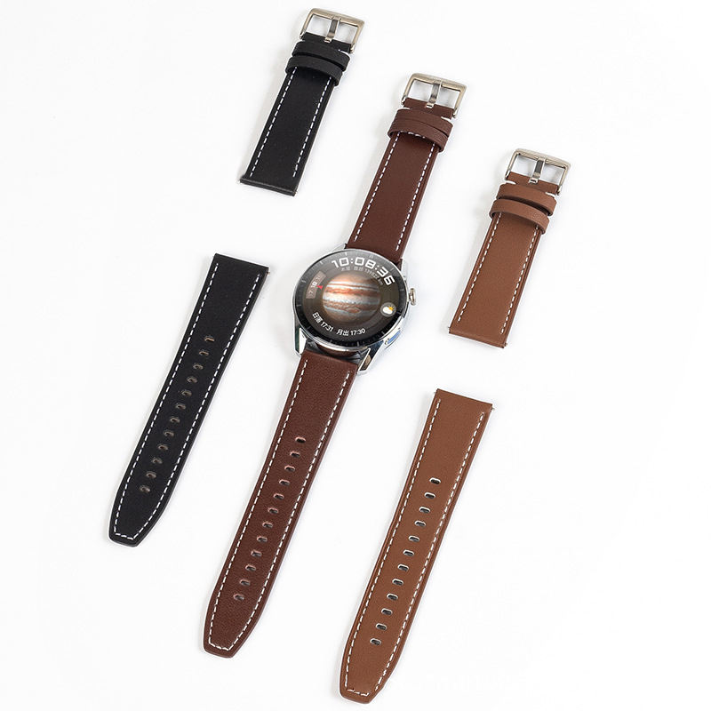 Bracelet de montre intelligent à libération rapide Upro 20/22 mm pour Huawei GT5/GT6, bracelet en cuir marron avec boucle argentée 18 mm 20 mm 22 mm