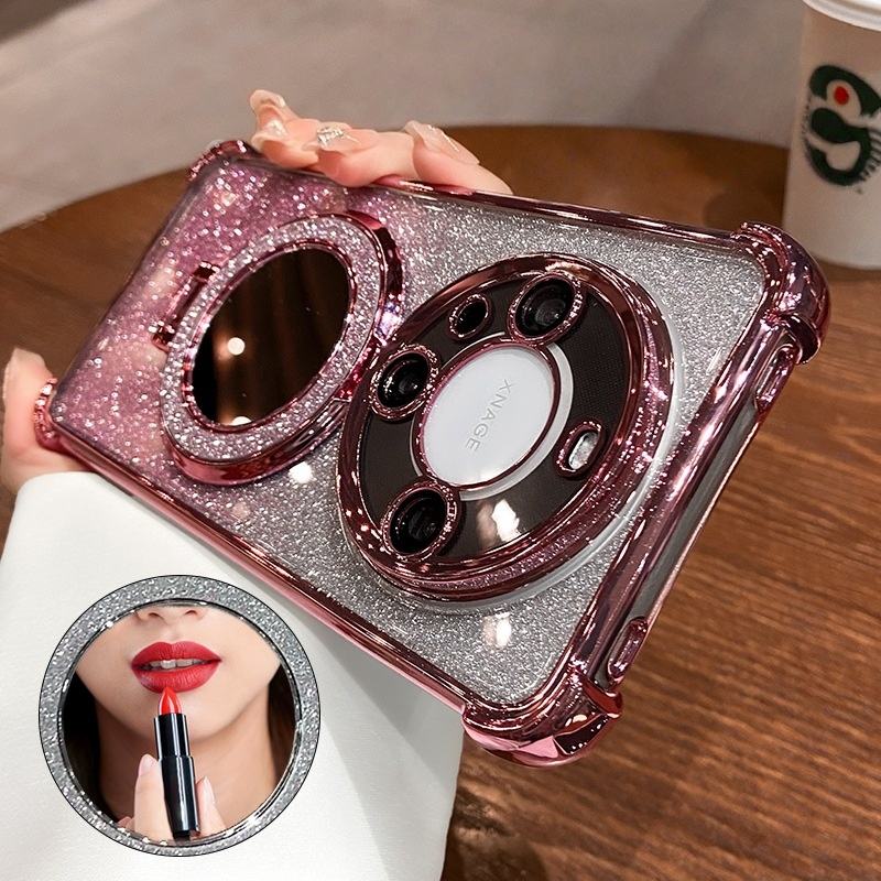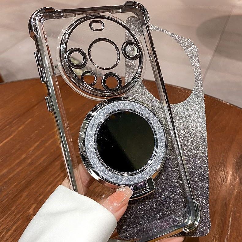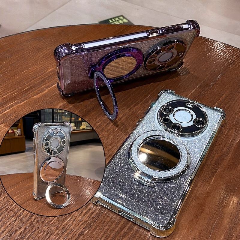 Coque de téléphone pour Huawei Mate 80 Pro Max avec support magnétique miroir, protection anti-chute avec airbag aux quatre coins pour coque de téléphone Huawei