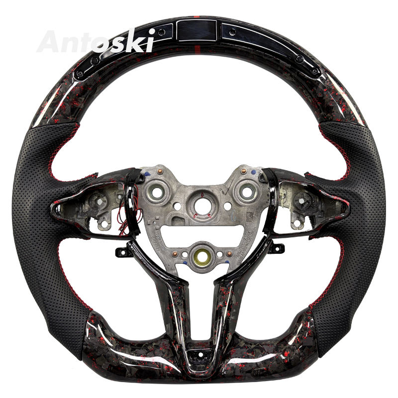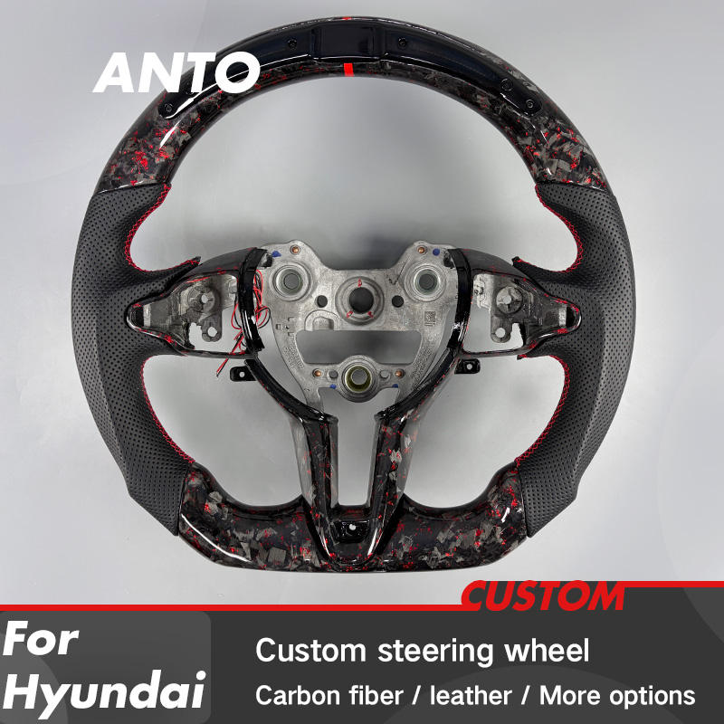 Volant de voiture en fibre de carbone forgée rouge personnalisé avec LED intelligentes pour Hyundai Veloster N C3 Concept Elantra N I20 I30 Kona N