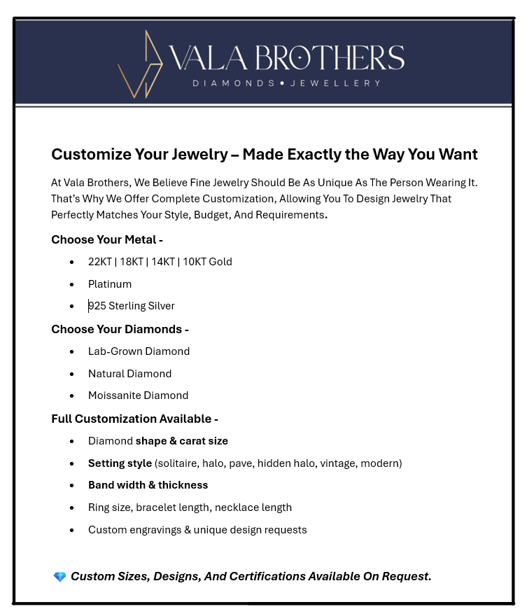 DIAMOND SHAPE, SIZE AND QUALITY (Min. order: 1 piece)