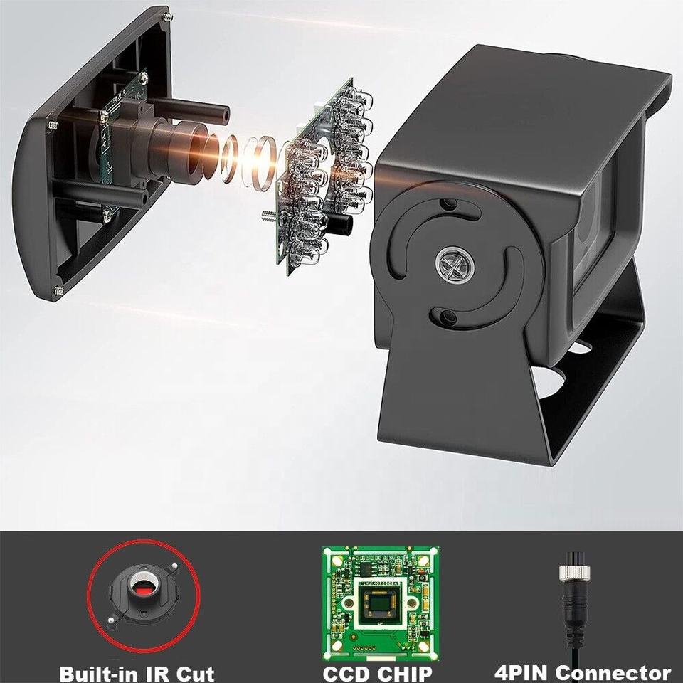 Caméra de recul IPoster 4 broches HD1080P AHD avec capteur couleur, boîtier métallique, image miroir, 18 LED, étanche IP68, capuchon de tuyau en caoutchouc