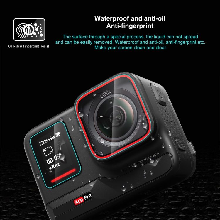 Pour Insta360 Ace Pro PULUZ 3 en 1 écran arrière et avant + lentille Film de verre trempé