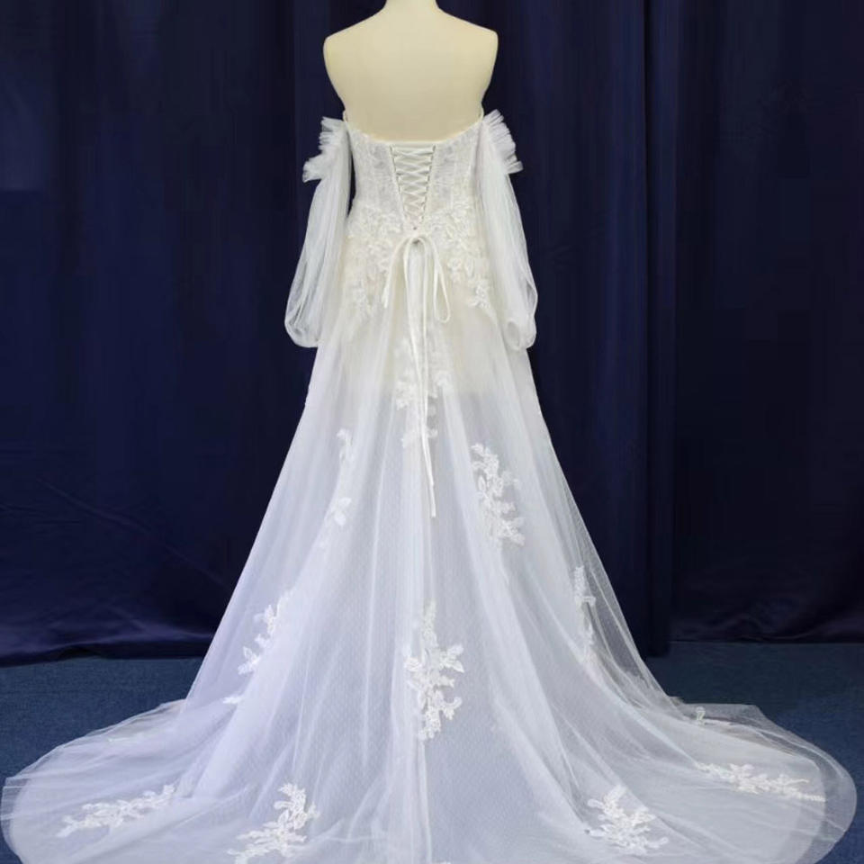 Pour Jancember LSFL02 Illusion épaule dentelle sirène robe de mariée Style moderne longue chapelle Train cristal fleur Applique