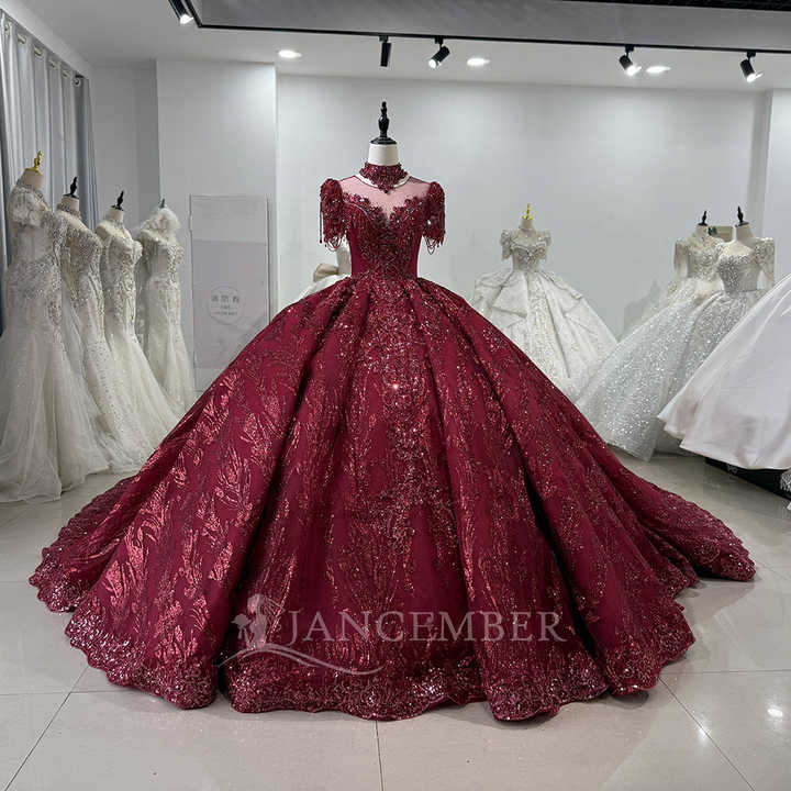 Pour Jancember XS159 Gossamer rouge femmes robe de bal cristal paillettes gland perlé Appliques broderie pour les fêtes