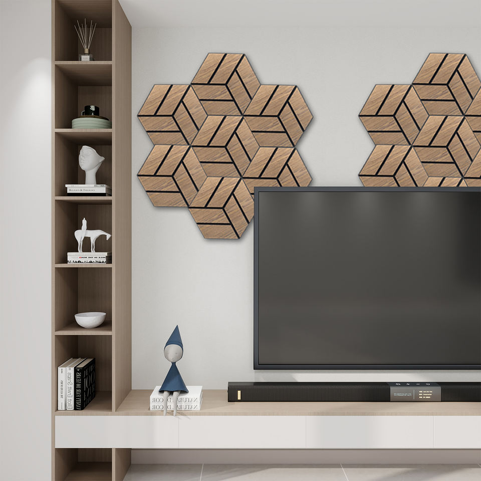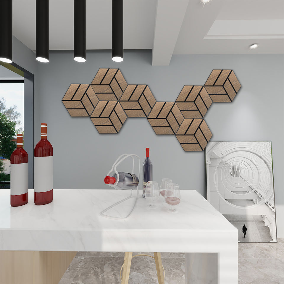 Pour KASARO Panneau mural acoustique hexagonal de décoration en bois Akupanel au design moderne personnalisé avec une caractéristique d'absorption acoustique unique