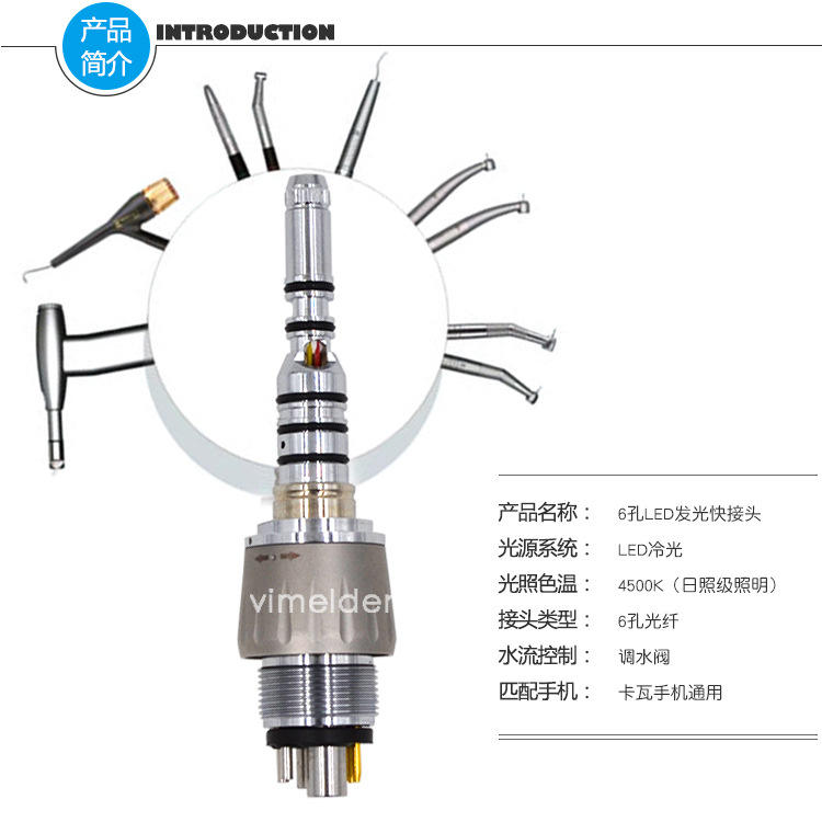 Pour instruments dentaires électriques KAVO, pièce à main à fibre optique compatible avec connecteur rapide à 6 broches et éclairage LED