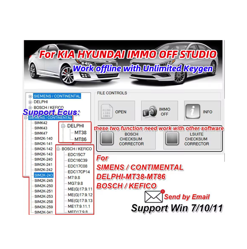 Logiciel IMMO OFF Studio pour KIA HYUNDAI, pour Siemens Continental SIMK42/43/47, pour Delphi Bosch Kefico, Logiciel IMMO OFF pour KIA