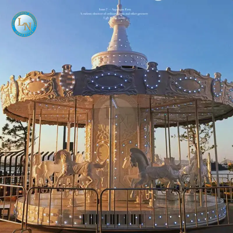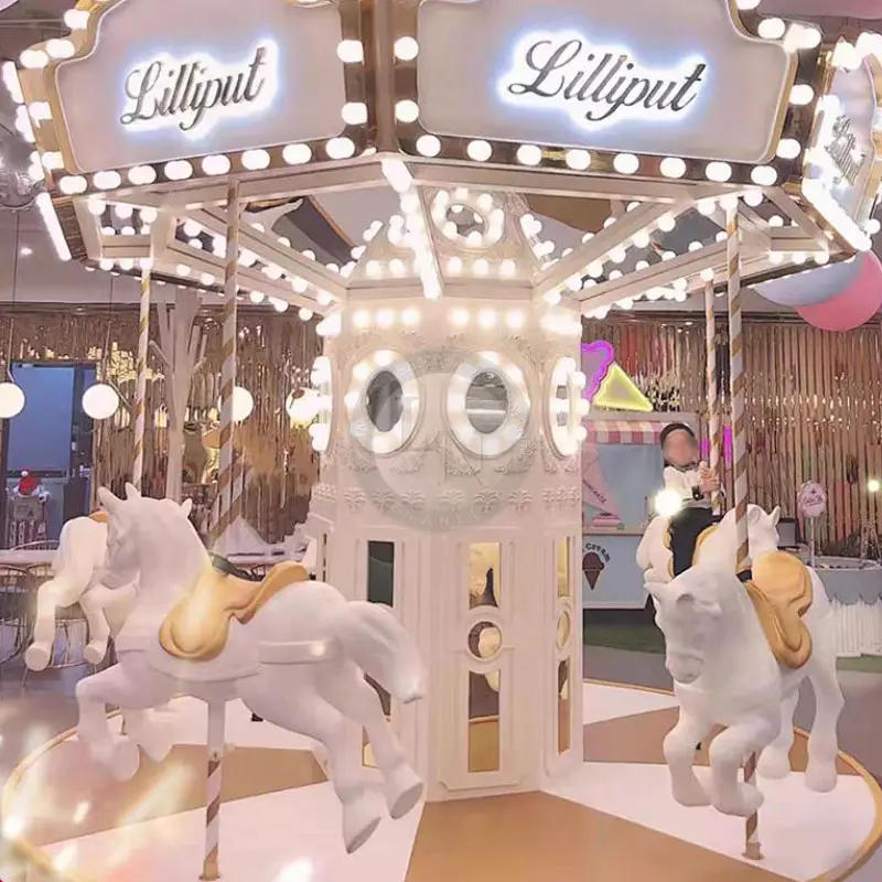 Indoor/Outdoor Rotating Horse Carousel Rides for Kids Pour La Seregraphique Upper Drive Fiberglass Material for Shopping Malls