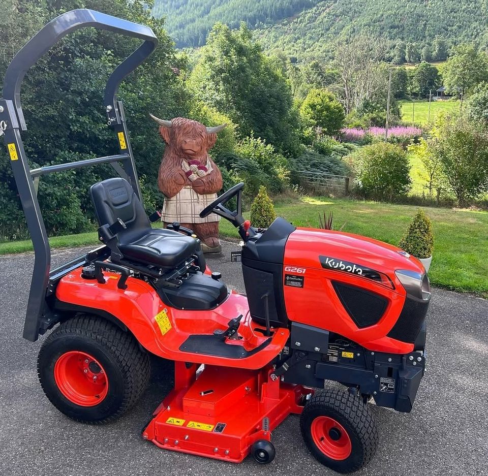 Tondeuse autoportée électrique Kubota G261, tracteur 2 temps pour une coupe d'herbe efficace jusqu'à 1000 mm, 28 V.