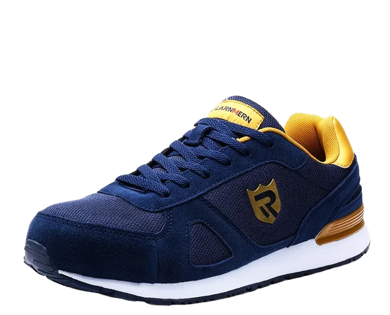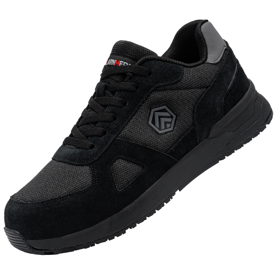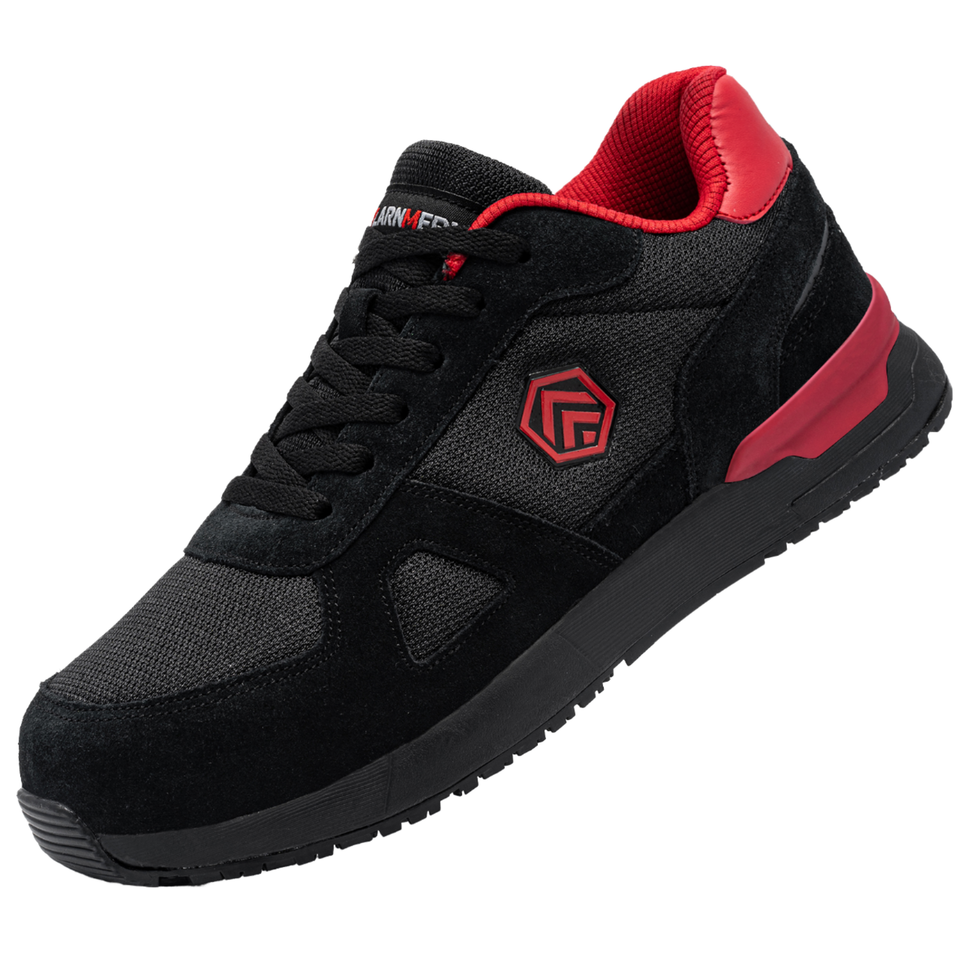 For LARNMERN Men's Lightweight Steel Work Shoes Black Red Anti-Slip Comfortable Breathable Safety Shoes Anti-Blowing Features