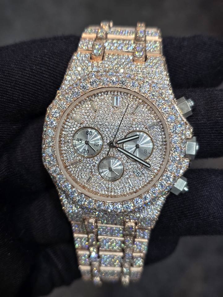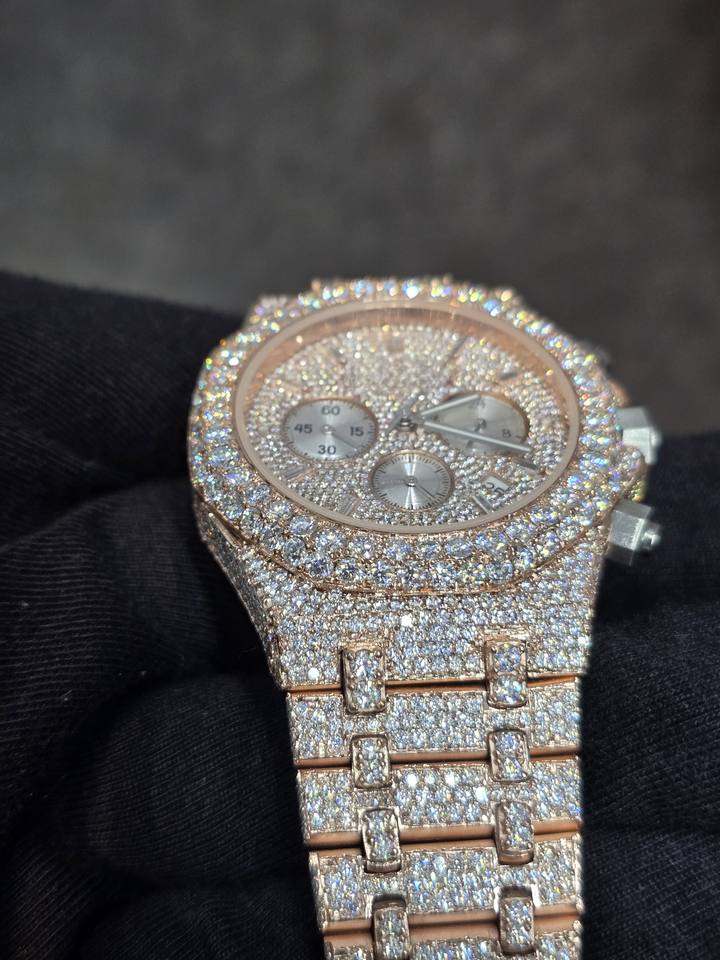 Montre en moissanite et diamants avec travail artisanal