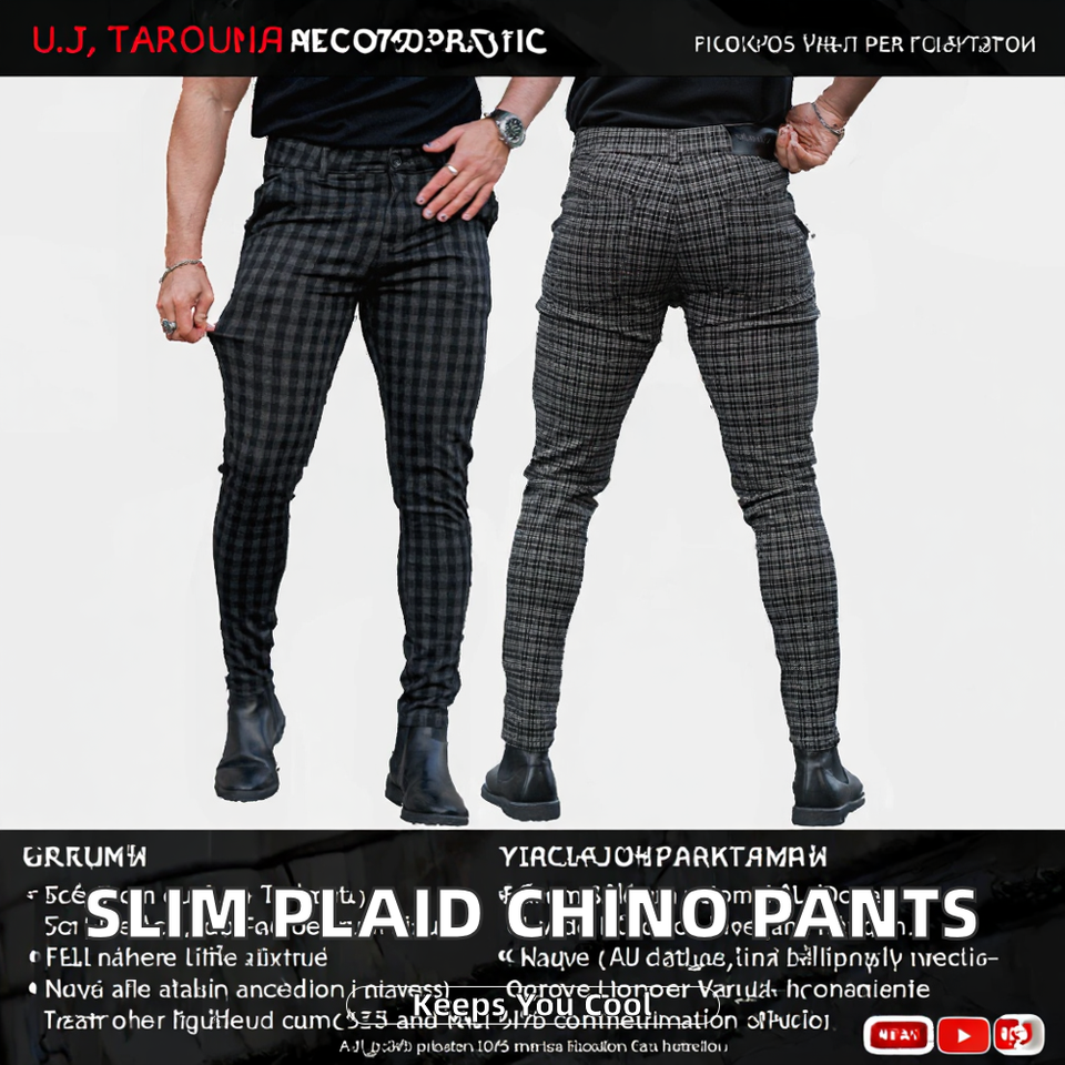 Pantalon Chino Homme Léger à Taille Mi-Haute, Coupe Droite, Boutons Décoratifs, Fermeture Éclair, Motif Écossais, Style Urbain Décontracté et Habillé, Coupe Skinny Slim