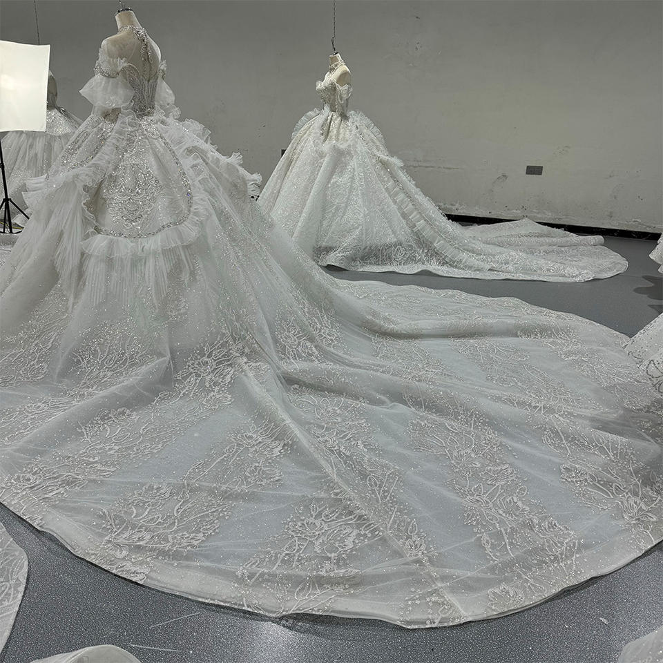 Pour MN226 moderne princesse hors épaule licou Empire robe de bal robe de mariée dentelle florale cristal Appliques chapelle Train