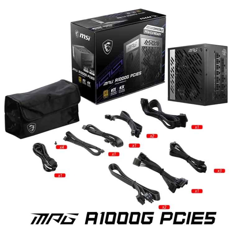 Alimentation électrique modulaire complète Gold 80 Plus PCIe5.0 pour MPGA1000G