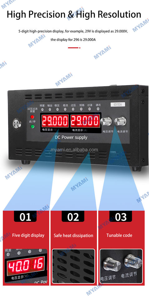 Pour MYAMi Réglable Programmable 1100W Numérique DC Alimentation 1380W 13.8V 60A 80A 100A Benchtop Variable 220V 380V Unique