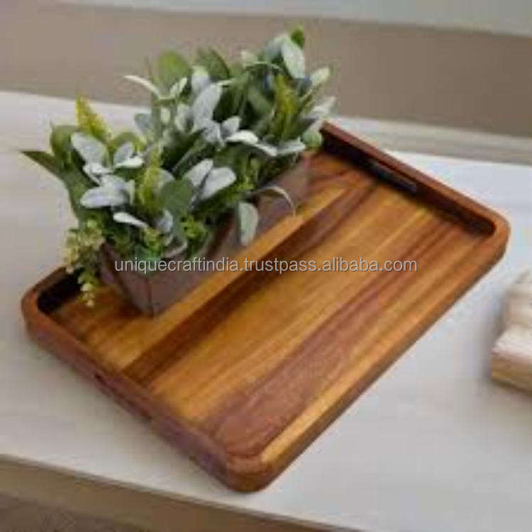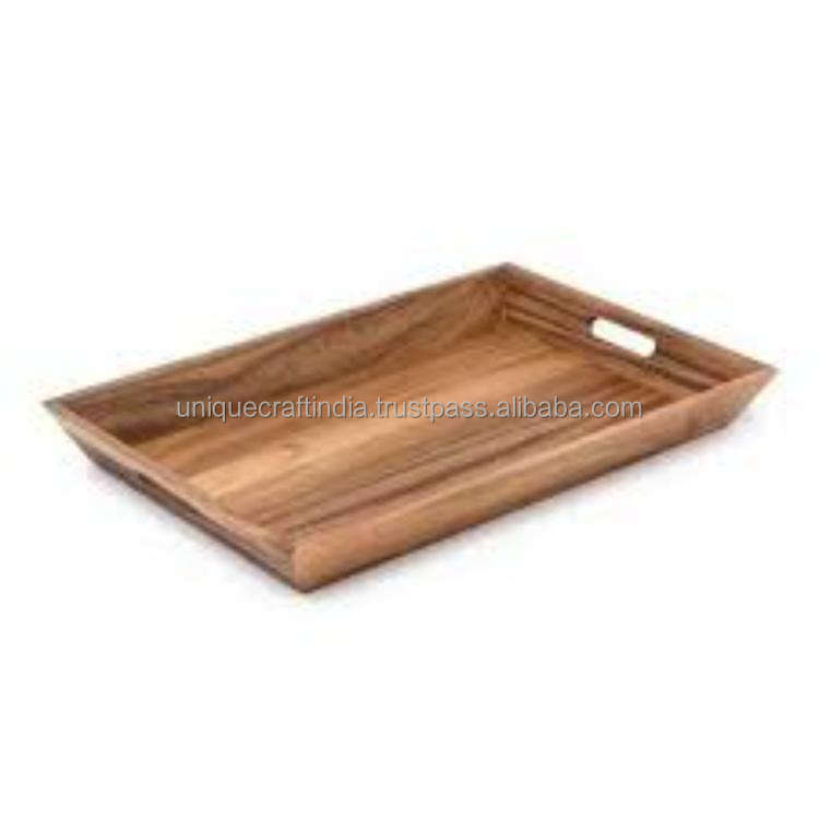 Pour Mango Crest Artisan Tray Plateau en bois gravé de qualité supérieure avec poignées confortables pour les cadeaux de mariage du Ramadan avec un motif