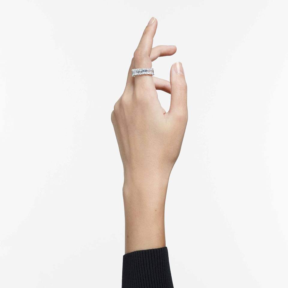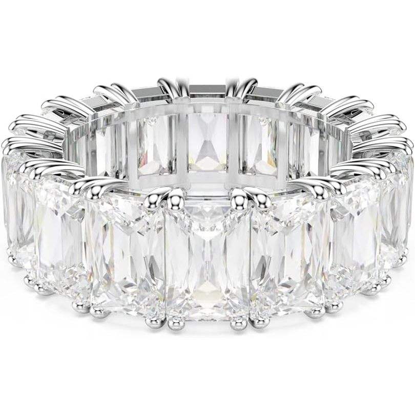 Bague pour filles avec cristaux rectangulaires transparents, finition rhodiée, non ajustable