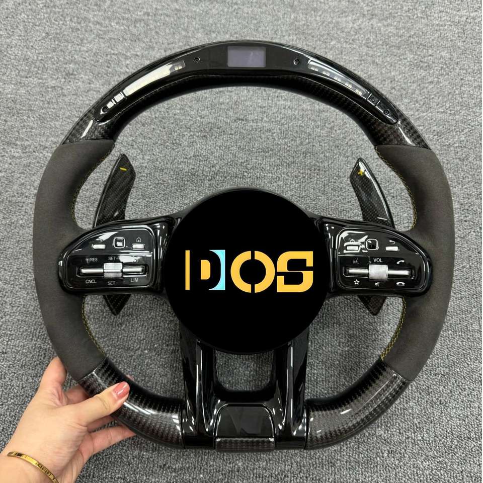 Volant en fibre de carbone personnalisé avec LED pour Mercedes-Benz 2015-2021 W205 C300 E260 E300 S400 G350 GLA 43 GT AMG GLB GLC SL