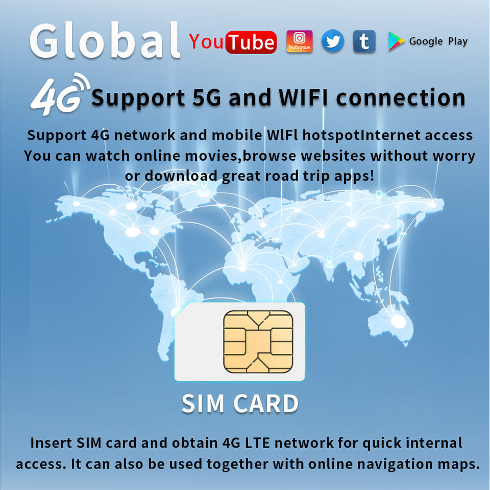 Sans fil, Aux, Usb, Bluetooth, Carte Sim 3G/4G, Construit en WiFi