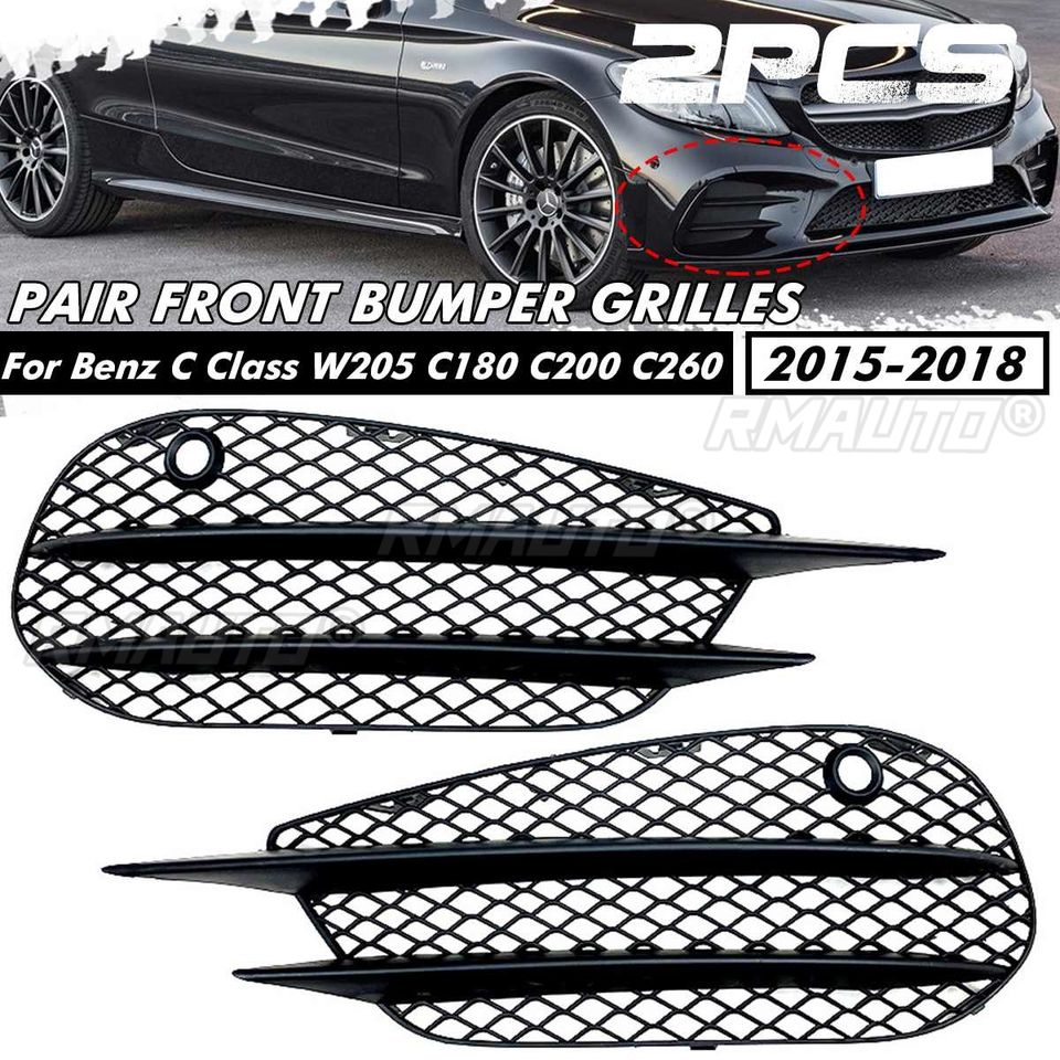 Pour Mercedes Benz Classe C W205 C180 C200 C260 2015 2016 2017 2018 Grille de pare-chocs avant noire, cache de phare antibrouillard