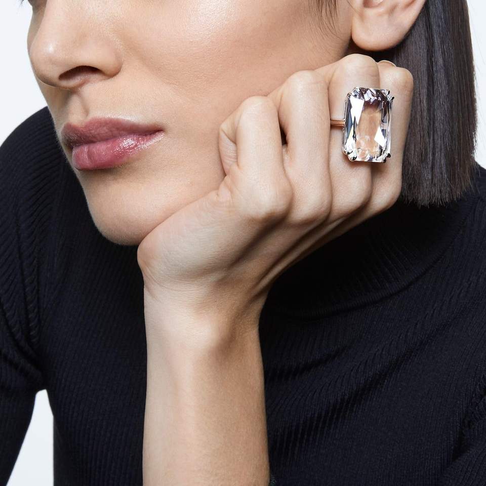 Bague Cocktail Surdimensionnée Mesmera en Cristal Blanc, Sans Métal, Plaqué, Taille 52/6/S, Ornée de Strass, Non Ajustable